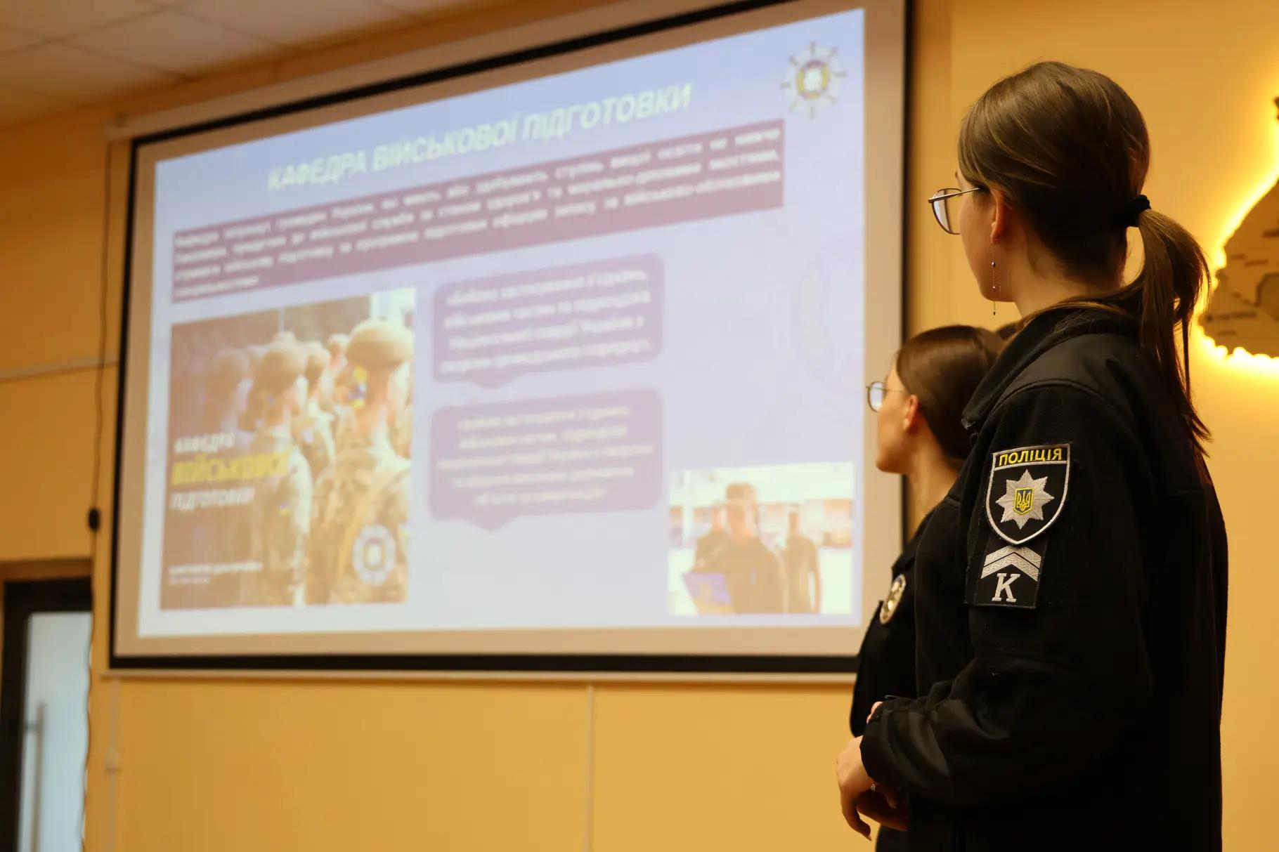 Метою зустрічі було ознайомлення ліцеїстів із можливостями навчання в академії, особливостями навчального процесу та перспективами кар’єрного росту у сфері правоохоронних органів.