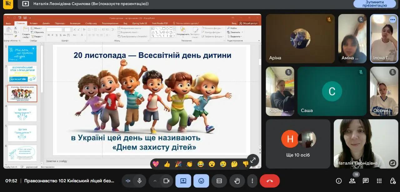 Метою проведення уроку стало формування усвідомлення того, що права дитини стосуються кожного здобувача освіти особисто, є невід’ємними й гарантованими на міжнародному рівні та в Україні.