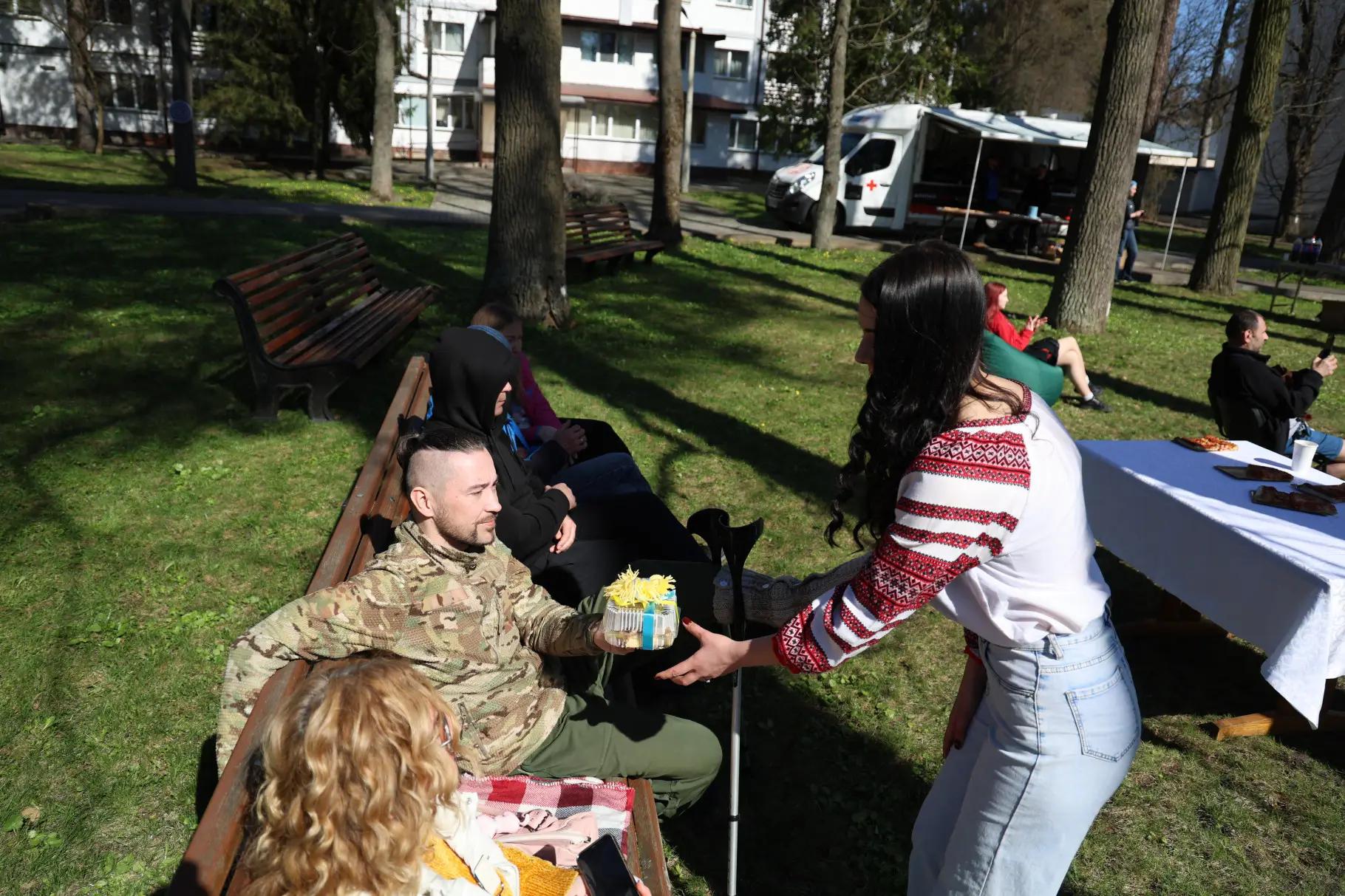До Медичного реабілітаційного центру «Пуща-Водиця» МВС України завітали курсанти Національної академії внутрішніх справ і ліцеїсти Київського ліцею безпекового спрямування та національно-патріотичного виховання імені Ярослава Кондратьєва МВС. Вони приїхали, щоб підтримати ветеранів, які проходять лікування та відновлення, і подарувати їм весняний концерт просто неба.