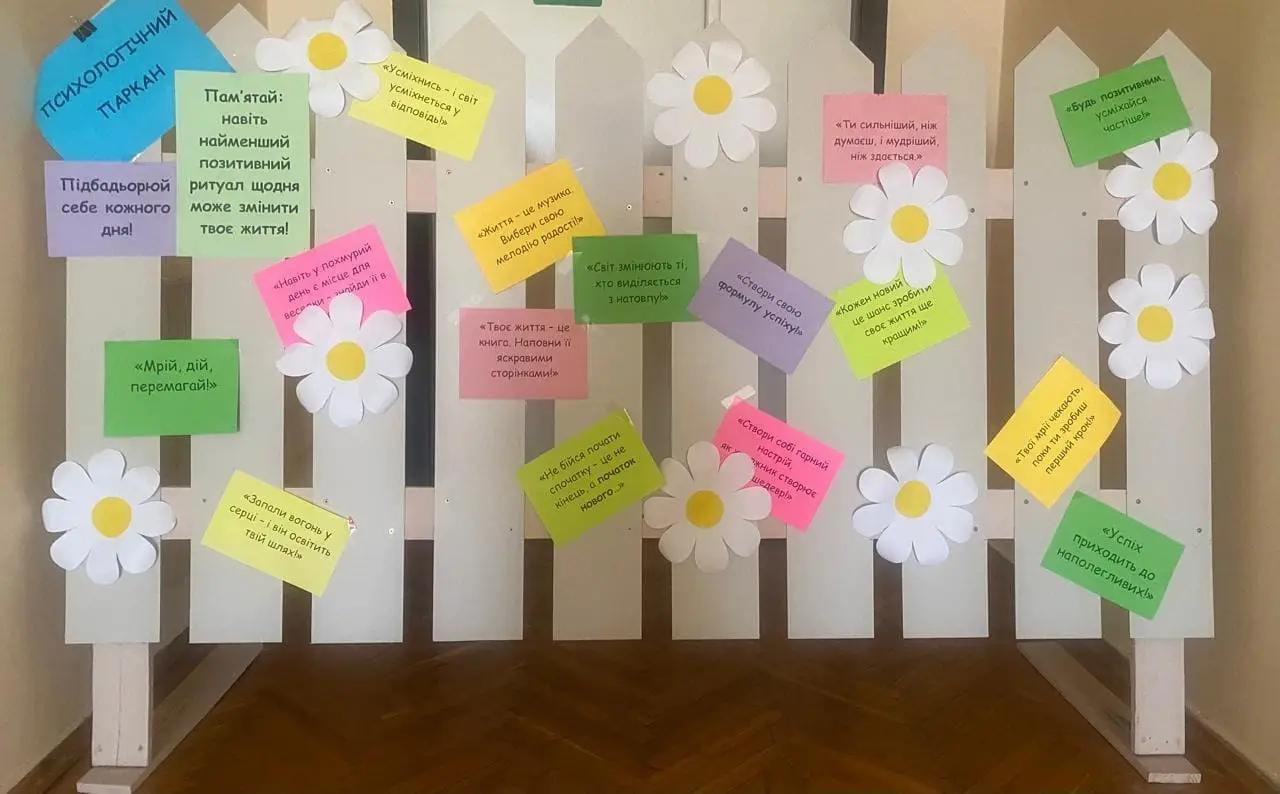 - Психологічний паркан «Підбадьорюй себе щодня», де учасники ділилися мотиваційними фразами та словами підтримки.